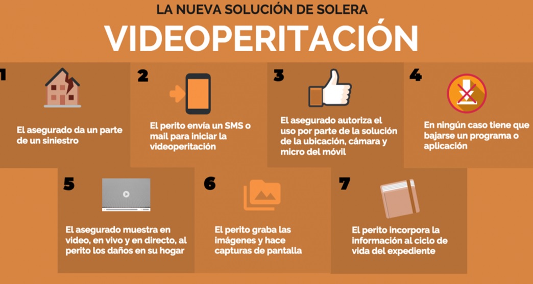 Solera ha lanzado una solución de videoperitación que permite de forma remota al perito verificar y comprobar las consecuencias del siniestro. Al no haber desplazamiento y recibir las imágenes en directo, el perito puede reducir un 80% el tiempo invertido en la peritación, pudiendo además comprobar de forma fehaciente si es un siniestro leve o si es necesaria una intervención presencial.