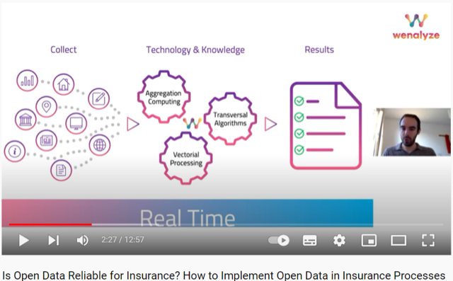 Wenalyze ha desarrollado un webinar dirigido al mercado internacional para fomentar la implementación de la tecnología Open Data dentro del sector. La ha impartido Roger Ferrandis, CCO de la startup, y el seminario web ha girado en torno a la pregunta '¿Son fiables los datos abiertos para las aseguradoras?'. Además de dar respuesta a esta cuestión, Ferrandis ha explicado con ejemplos cómo funciona esta tecnología y los beneficios que puede llegar a aportar al sector.
