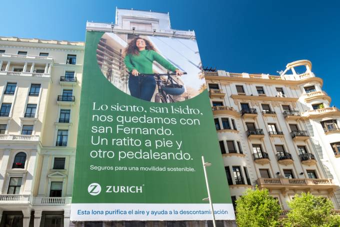 Zurich coloca una lona en el centro de Madrid para promover la movilidad sostenible