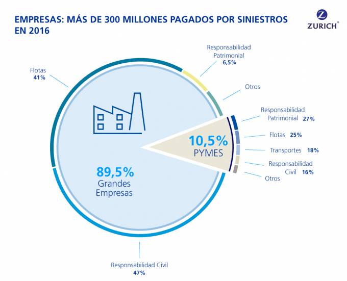 Zurich indemnizó con 313 millones de euros a empresas por siniestros en 2016
