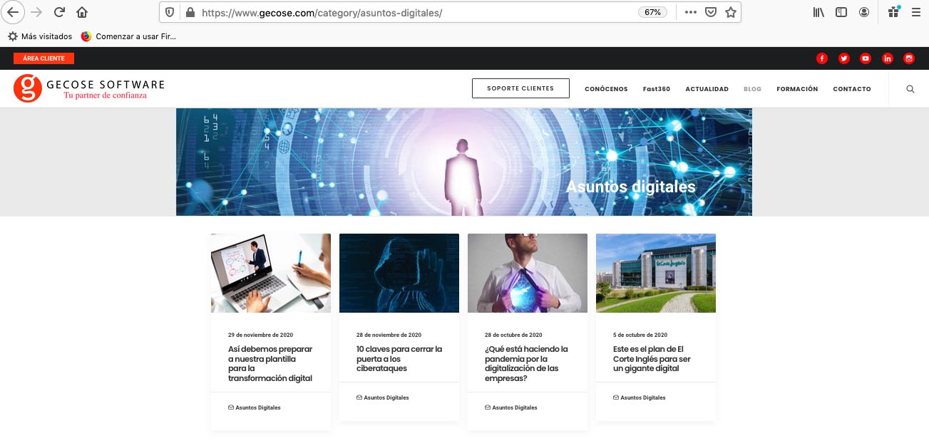 Gecose Software cuenta con una nueva página web dentro del plan de la entidad que también destaca mejorar su presencia y actividad en las redes sociales. La nueva estrategia coincide con el lanzamiento de Fast360, su nueva plataforma tecnológica y que prepara desde hace 3 años.